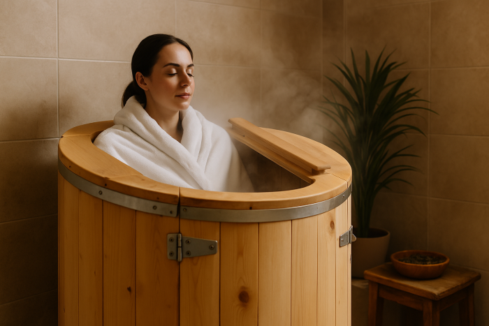 - Розслаблення м'язів і нервової системи. Сидячи в бочці, тіло поступово звільняється від накопиченої напруги. М'язи розслабляються, а нервова система немов огортається м'яким теплом, заспокоюється і налаштовується на гармонію. Регулярні сеанси допомагають боротися з хронічною втомою, стресами після роботи і навіть з легкими порушеннями сну.