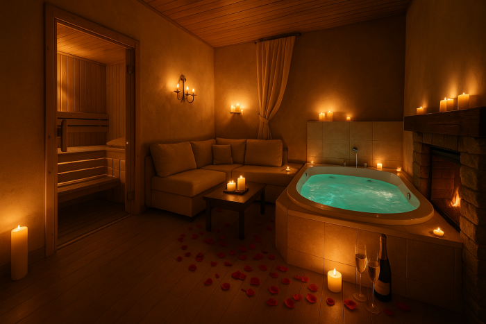 Романтичний відпочинок у парній — це можливість відволіктися від повсякденних справ і зосередитися тільки один на одному. М'яке світло, тепло, аромат олій і тиха музика створюють особливий настрій близькості та довіри.