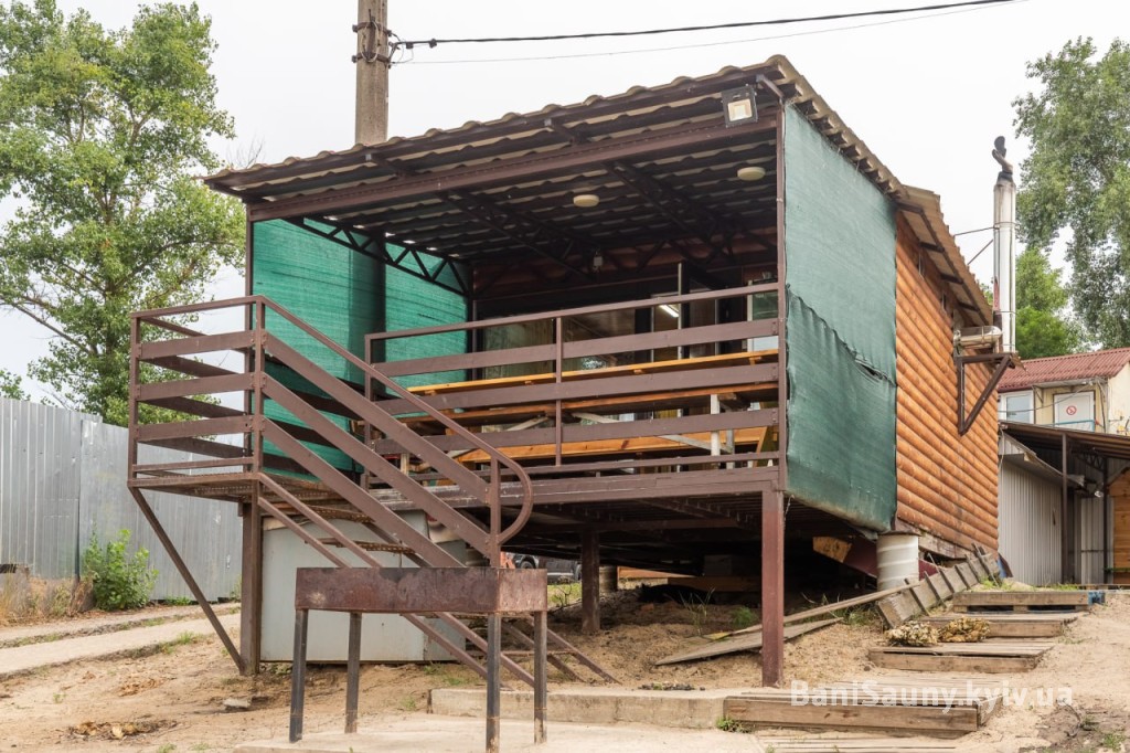 Понтонний вихід в воду. Мангал. Тераса біля бані з видом на Дніпро.
